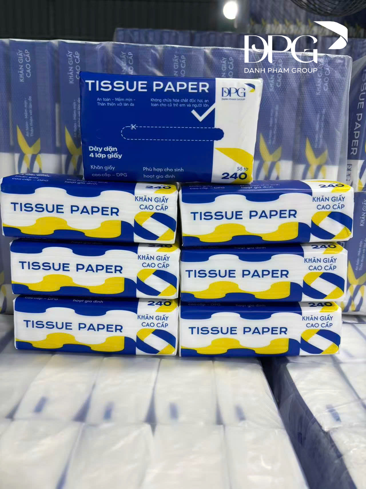 Khăn giấy cao cấp DPG là dòng sản phẩm mới ra mắt từ Danh Phạm Group (DPG), được sản xuất với tiêu chuẩn chất lượng cao, đáp ứng nhu cầu sử dụng đa dạng từ gia đình đến nhà hàng, quán ăn và doanh nghiệp.